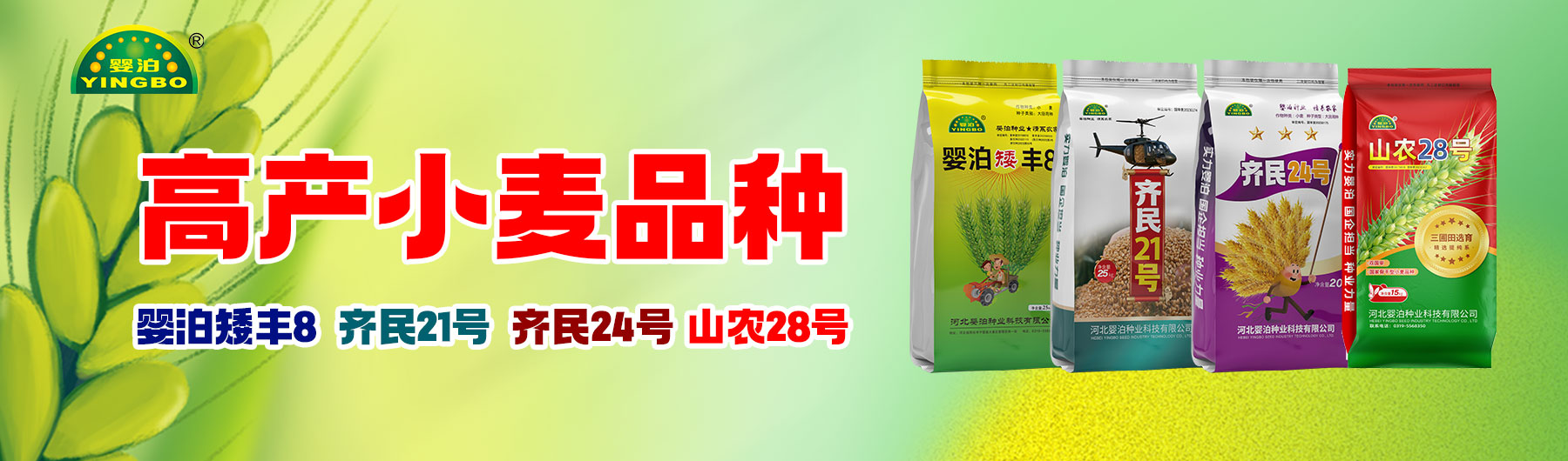 婴泊种业最新推出小麦新品种:齐民21号、齐民24号;自主培育“婴泊”牌小麦品种:婴泊矮丰8、婴泊700,重点推广河北省骨干型小麦品种:山农28号;2024河北省农业农村厅小麦主导品种石麦26。
