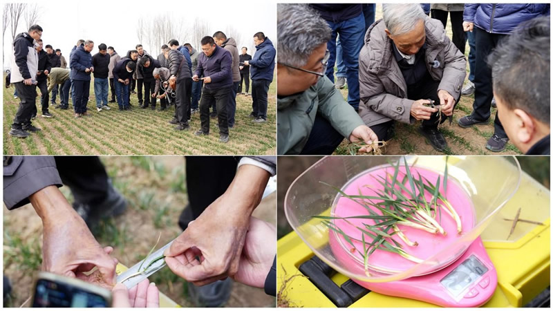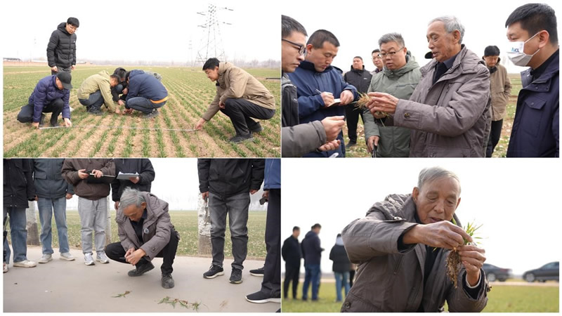 在晋州、辛集5个示范地块,技术人员按土壤墒情、苗情长势划分3个专项小组,同步开展标准化数据采集,郭进考专家亲自教授大家如何拍摄记录苗情、如何进行数据测量和记录,为大家带来了一场精彩生动的田间实战课堂。