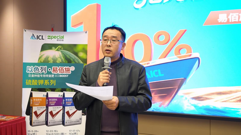 好产品更需好的落地服务,才能让每一位种植户都选得放心、用得舒心。易佰施市场推广员杜秀明紧随其后登台,从市场一线实操角度,为现场嘉宾详细讲解易佰施的市场推地方案与田间服务体系。从用肥指导、田间回访到效果跟踪,让大家在推广和使用易佰施的过程中全程无忧,真正把优质肥料的效果落到田间地头,让丰产丰收看得见、摸得着。