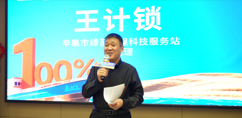 辛集市绿苗植保科技服务站项目经理 王玉,从品牌实力、产品效果、种植跟踪三个维度,分享了易佰施特复肥的核心优势,结合亲眼见证的农户增产实例,让在场嘉宾直观感受到产品的实际效果,更提出携手厂家、媒体推广优质农资服务,让辛集种植户切实受益的美好愿景。